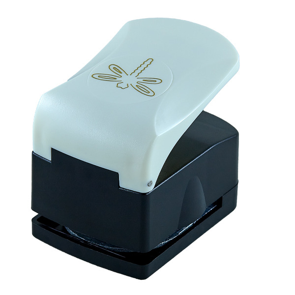 Dziurkacz wycinający motyw o wielkości ok. 32 mm. Wycięty motyw posiada tłoczenia. Wycięcia zaznaczono na czarno, wypukłości na niebiesko.