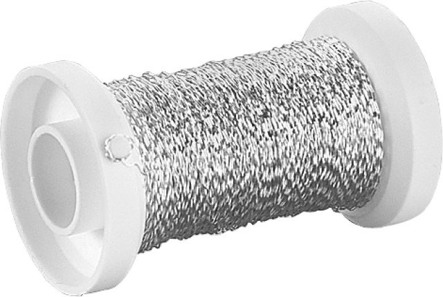 Drucik z żelaza, farbowany, w kolorze srebrnym o średnicy 0,25 mm. Długość 50 m.