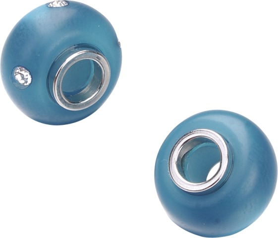 Dwa koraliki z wysokiej jakości żywicy syntetycznej. Średnica 14 mm, duży otwór 4,5 mm z metalową wstawką. Jeden koralik posiada 4 kryształki Swarovskiego, drugi bez kamyczków.