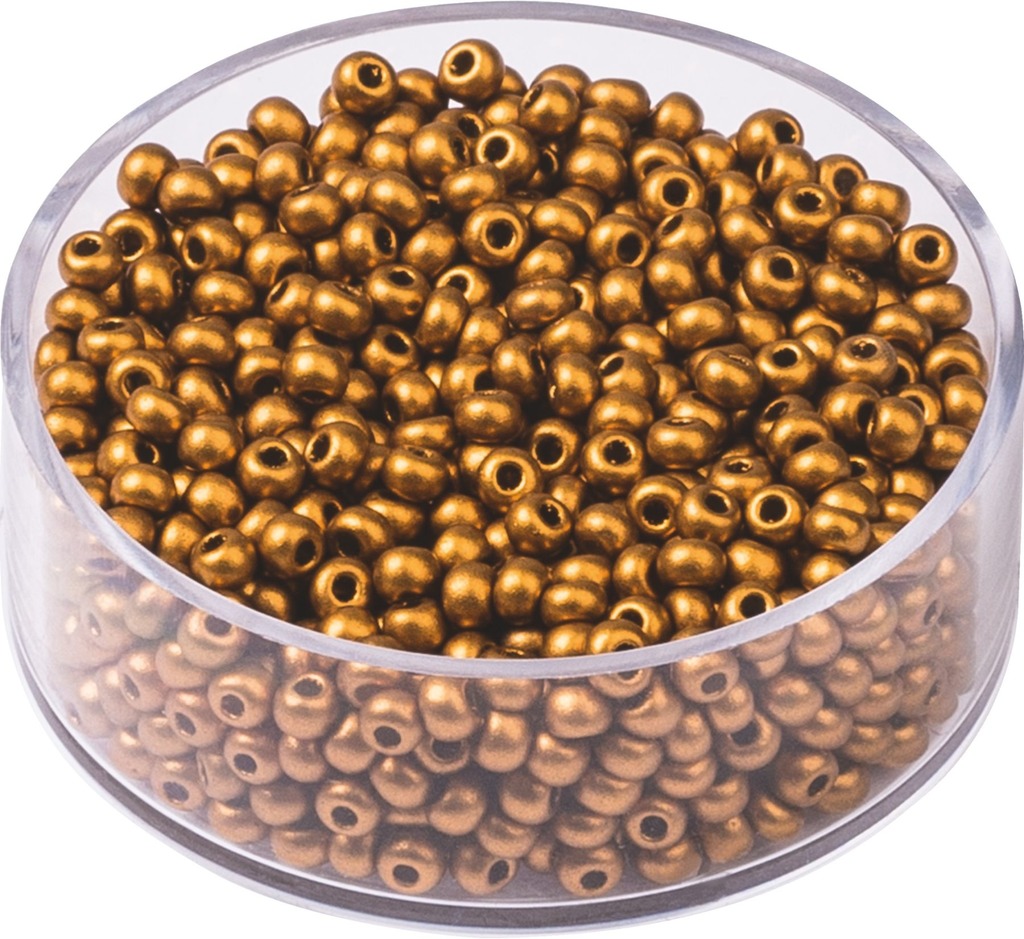 Koraliki szklane, średnica 2,5 mm, 17 gram w pudełeczku. Idealne do nawlekania i do przyszywania.