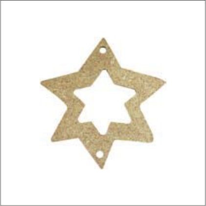 Gwiazda deco o wymiarach 7 x 7,5 x 0,3 cm.