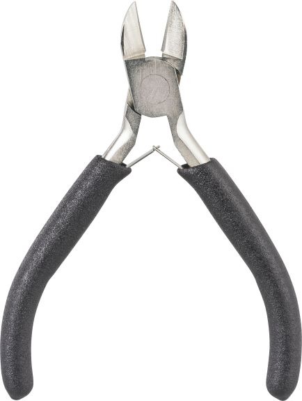 Czarne szczypce z antypoślizgowym uchwytem. Produkt wykorzystywany do tworzenia biżuterii.