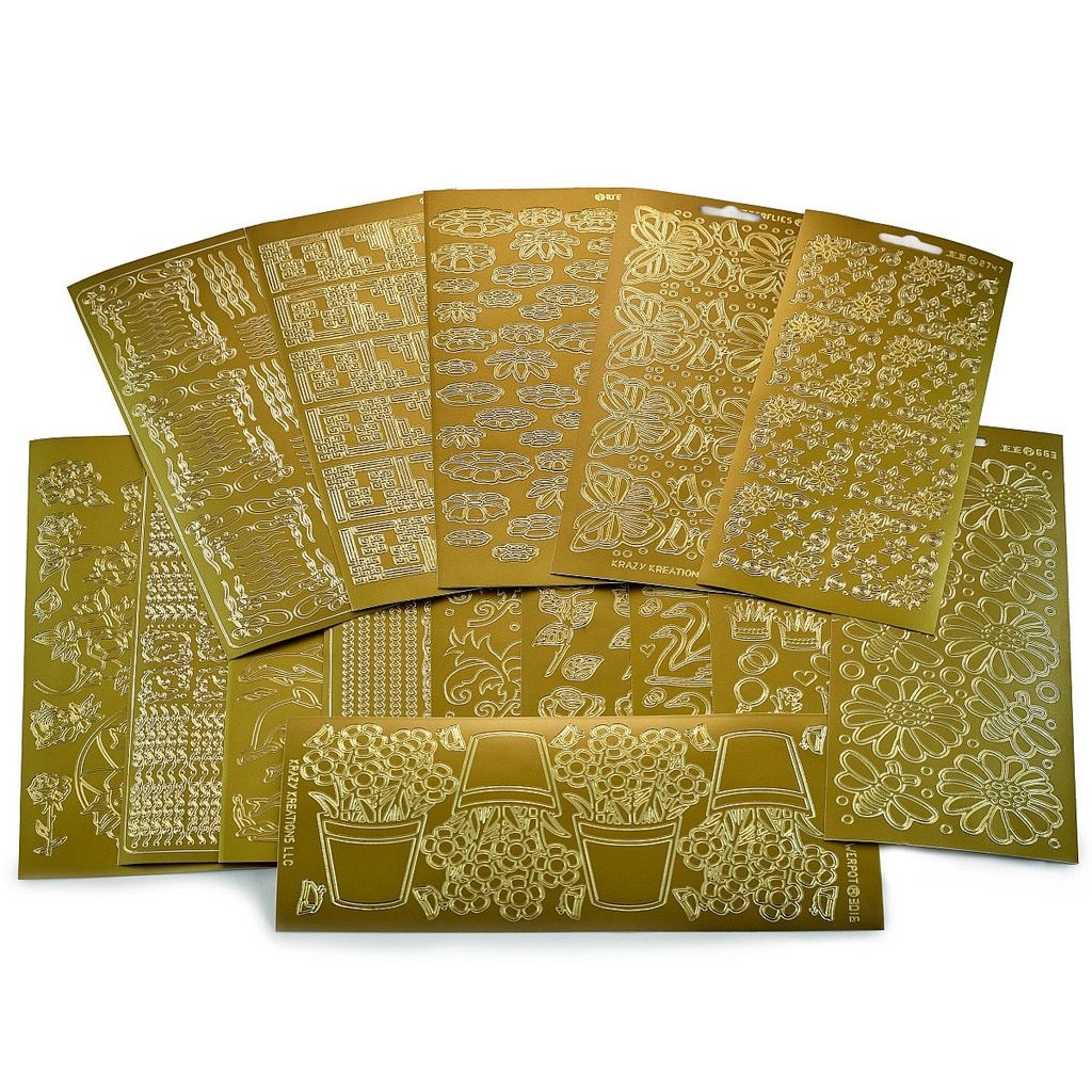 Zestaw naklejek ażurowych Kwiaty, Motyle, Narożniki, Party 15 szt. - Złote