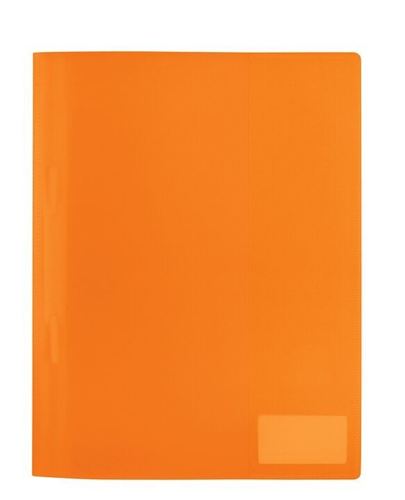 Skoroszyt A4 wykonany z wytrzymałej folii polipropylenowej. Półprzezroczysty. Z etykietą na podpis i wewnętrzną zakładką na notatki.