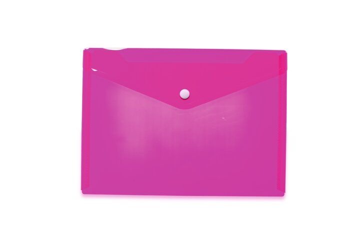 Plastikowa koperta zapinana na zatrzask. Wykonana z folii PP. Półprzezroczysta. Rozmiar 25 x 18 cm.