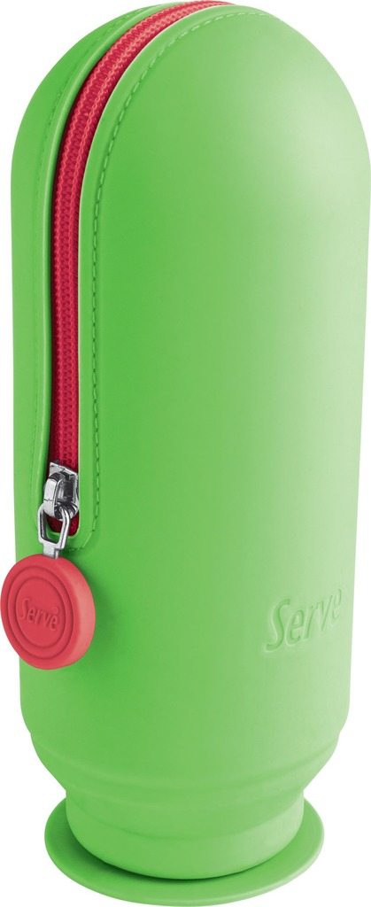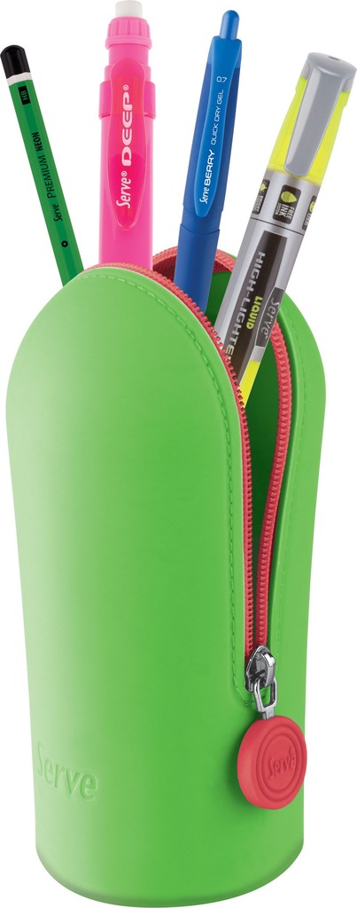 Piórnik w formie stającej tuby, wykonany z wytrzymałego silikonu. Góra zamykana na suwak. Piórnik można "przyssać" do gładkiej powierzchni. Po otwarciu służy jako praktyczny i wygodny pojemnik na przybory.