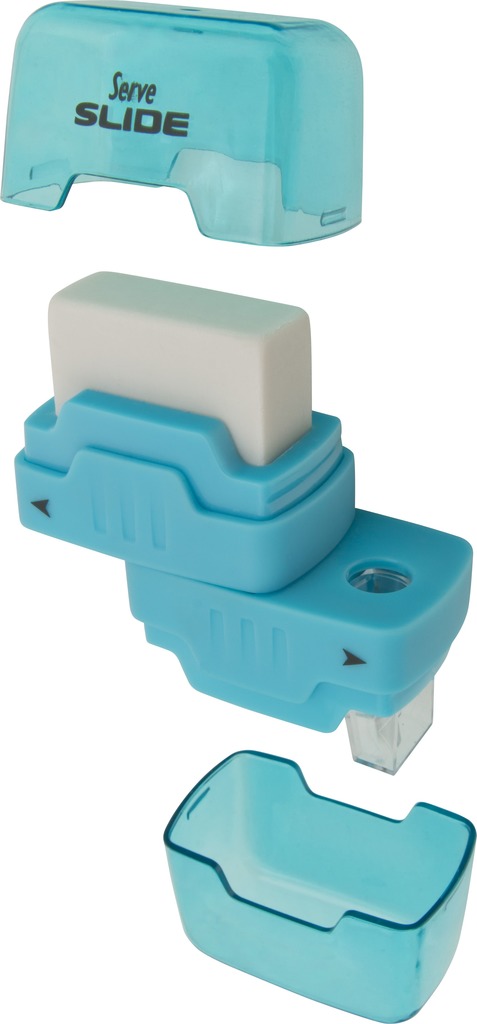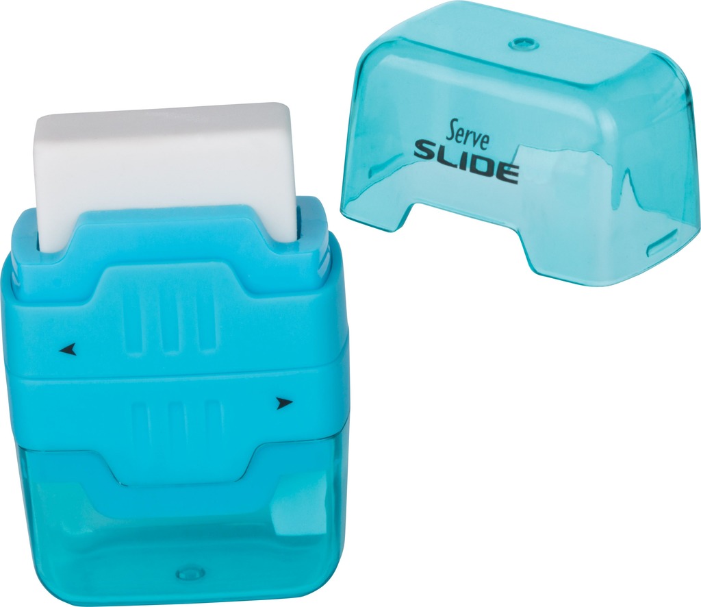 Temperówka z gumką do mazania. Ergonomiczne wykonanie. Gumka zamykana. Temperówka z pojemnikiem.