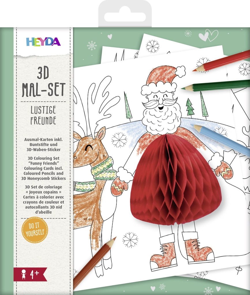 W zestawach każdej malowanki wchodzą: 4 obrazki, 6 kredek, ruchome oczka oraz gotowe elementy z papieru o strukturze "plastra miodu".