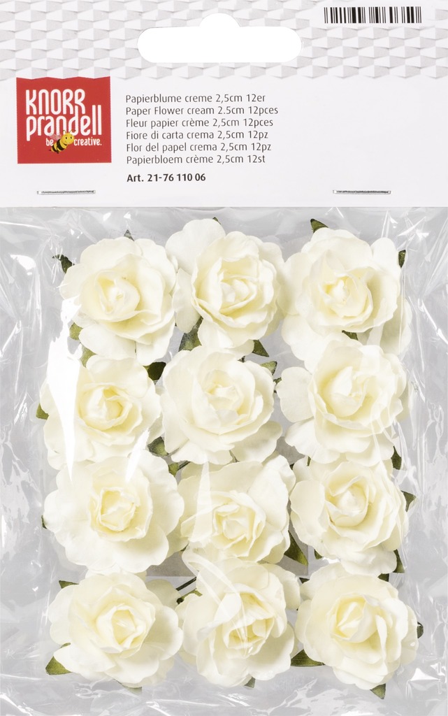 Kwiatki o szerokim zastosowaniu m.in. do kartek, do przestrzennych prac plastycznych, jako uzupełnienie kompozycji w szkle, do dekoracji stołów. Opakowanie zawiera 12 kwiatków o średnicy 2,5 cm.