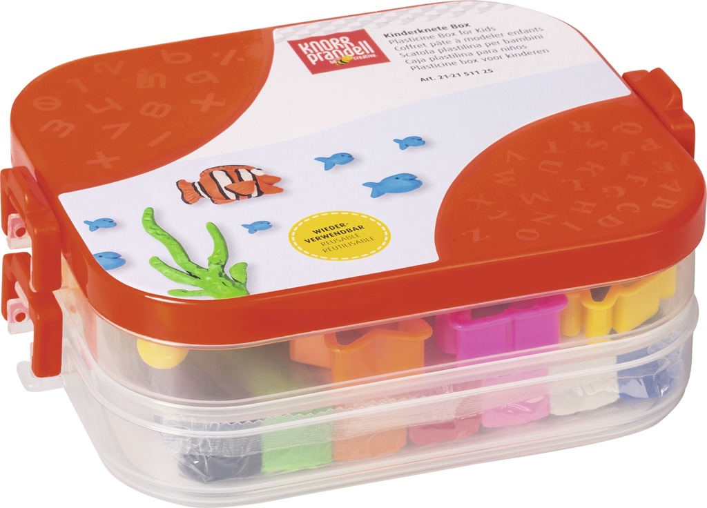 Plastelina dla dzieci w plastikowym, zamykanym pudełku.
