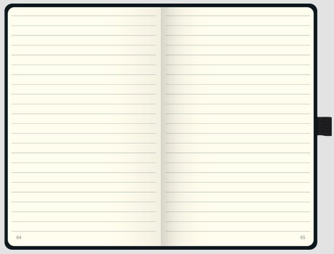 Dopasowana kolorystycznie szlufka na długopis, gumka, zakładki indeksujące, kieszeń wsuwana, 2 tasiemki, kieszonka na wizytówkę.