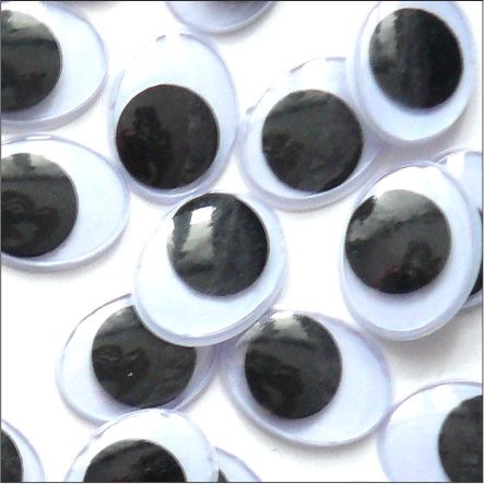 Plastikowe oczka z ruchomą czarną źrenicą. Opakowanie zawiera 1000 sztuk oczek o średnicy 20 mm. Oczka można przykleić klejem bądź taśmą dwustronnie klejącą. Zastosowanie we wszystkich pracach plastycznych.