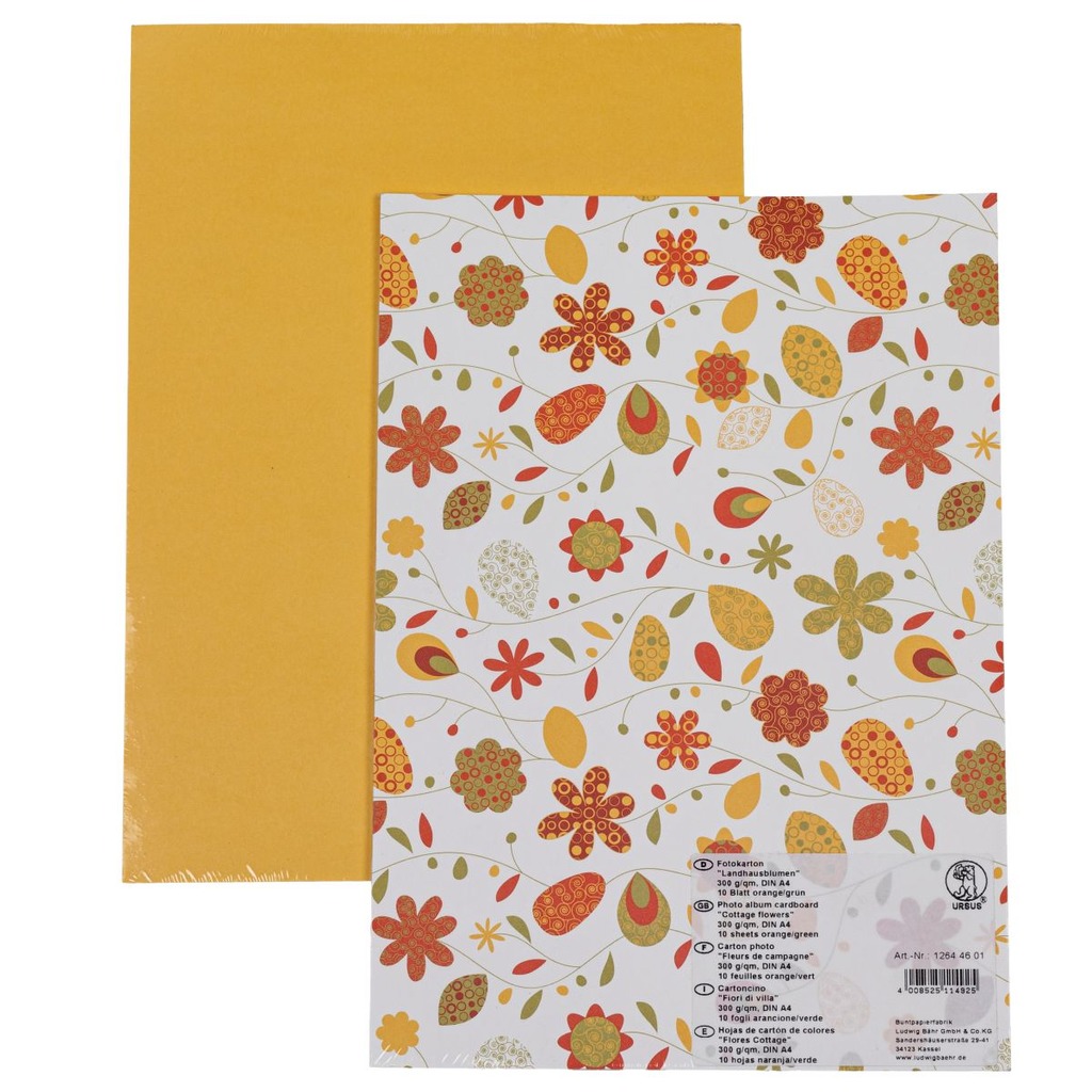 Karton A4 "Cottage flowers" 10 szt., pomarańczowy