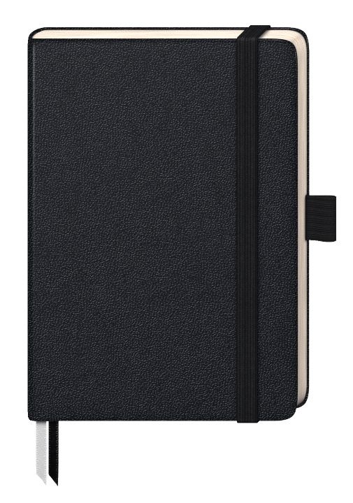 Dopasowana kolorystycznie szlufka na długopis, gumka, zakładki indeksujące, kieszeń wsuwana, 2 tasiemki, kieszonka na wizytówkę.