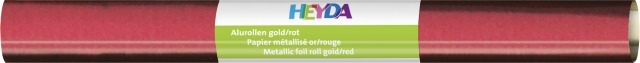 Folia aluminiowa w kolorze złotym, z drugiej strony w kolorze czerwonym, o wymiarach 50 x 78 cm.