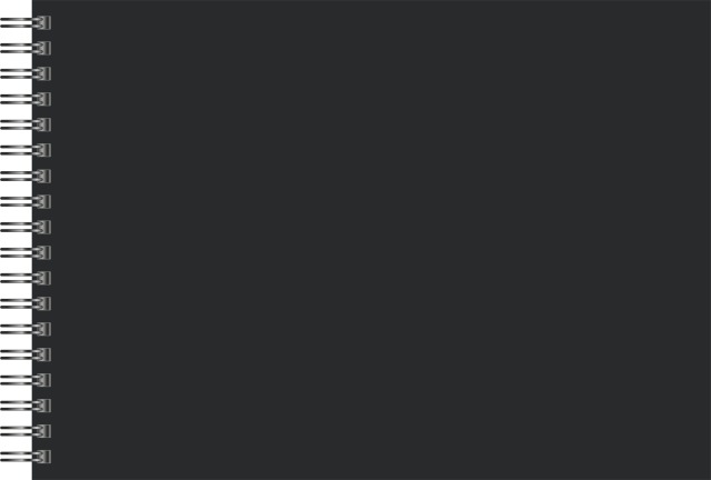 Twarda, kartonowa okładka, dwustronnie barwiona w kolorze czarnym. 25 sztywnych arkuszy o gramaturze 230 g w kolorze czarnym. Całość na mocnej spirali. Karton jest odporny na działanie światła.