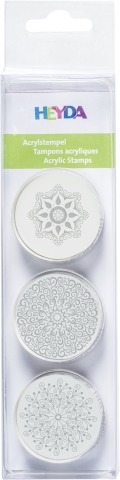 Zestaw 3 akrylowych stempli o średnicy wzoru 3 - 4 cm.