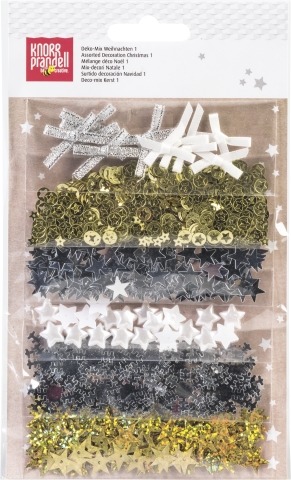 Zestaw elementów dekoracyjnych do stworzenia pracy, kartki, albumu o tematyce świątecznej. W skład zestawy wchodzą: konfetti, cekiny, cyrkonie.