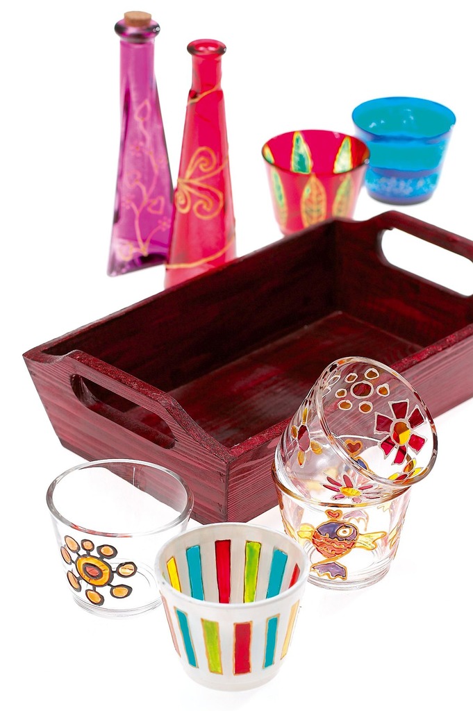 Farba do szkła na bazie alkoholu. Transparentna, błyszcząca, niezmywalna. Ozdobione nią przedmioty nie wymagają wypiekania lub wypalania w piekarniku. Do dekorowania szkła, plastiku, akrylu, powierzchni ceramicznych.
